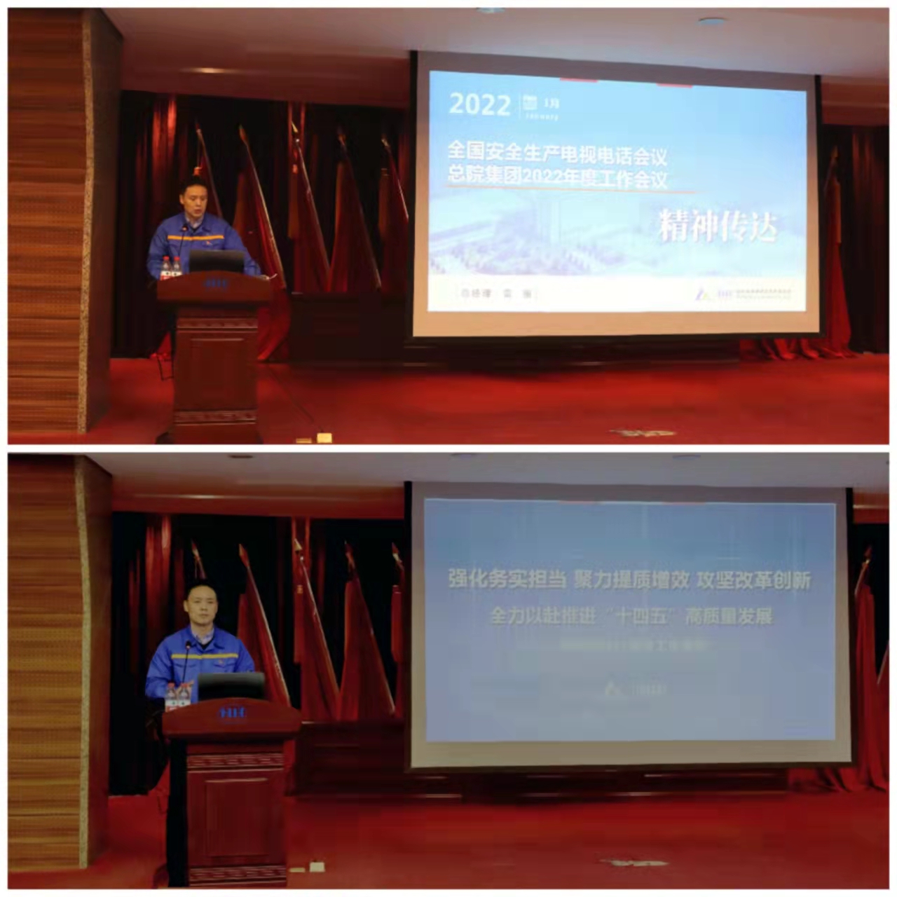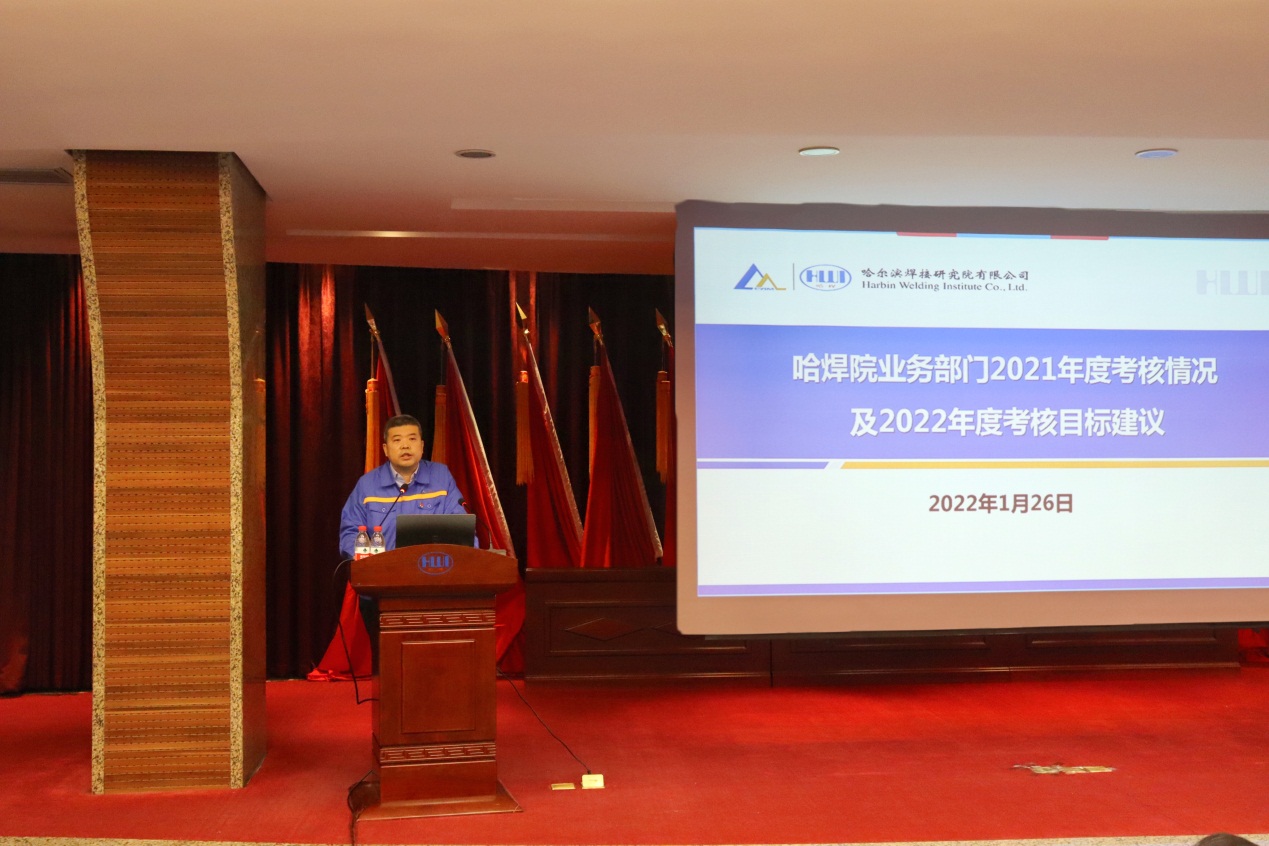 年度工作會議上,總經理、黨委副書記雷振傳達學習了全國安全生產電視電話會議及總院集團2022年度工作會議精神,并代表領導班子作了題為《強化務實擔當 攻堅改革創新 聚力提質增效 全力以赴推進“十四五”高質量發展》的工作報告,全面回顧了2021年度工作,對2022年重點工作進行了部署。2021年哈焊院堅決貫徹落實黨中央、國務院、總院集團決策部署,以“十四五”戰略規劃為引領,堅持深化業務工作與黨建工作的雙向互融,提效能、搶先機、創新績,較好完成了年度工作目標,公司改革發展和黨的建設取得了新的重要進展和顯著成效。2022年哈焊院將堅持以習近平新時代中國特色社會主義思想為指導,深入貫徹落實黨的十九大和十九屆歷次全會精神,全面貫徹新發展理念,加快融入新發展格局,充分發揮黨建領航作用,堅持穩中求進工作總基調,堅持創新驅動,推動高質量發展,決戰決勝國企改革三年行動,努力實現總院集團“雙倍增”戰略年度分解目標。