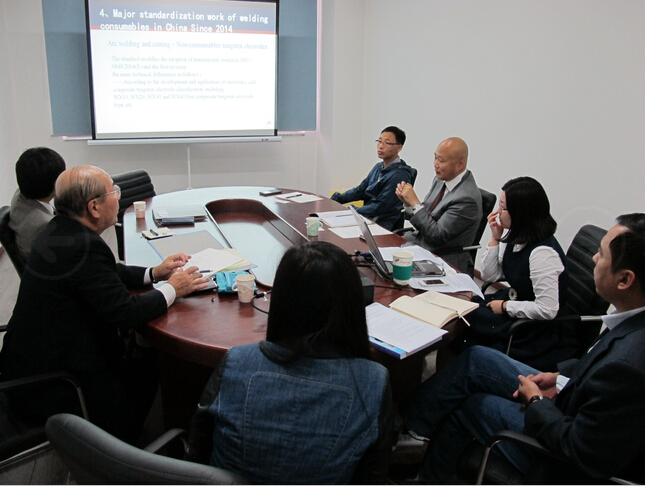 樸秘書長首先對日本客人的到訪表示歡迎,他簡要介紹了我國焊接標委會的基本現狀(包括組織機構、管理模式及標準體系)及近兩年的標準制、修訂情況;接下來由焊材中心楊子佳代表焊材分技術委員會介紹了中國焊材發展的現狀以及焊材分委會近期的標準化工作進展。鈴木直樹先生也介紹了日本焊接工程協會的組織結構、近兩年日本焊材標準的修訂情況和今后計劃修訂的日本標準概況。雙方就兩國標準發展現狀、ISO標準在本國的轉化情況及下一步工作打算進行了熱烈地討論和交流。