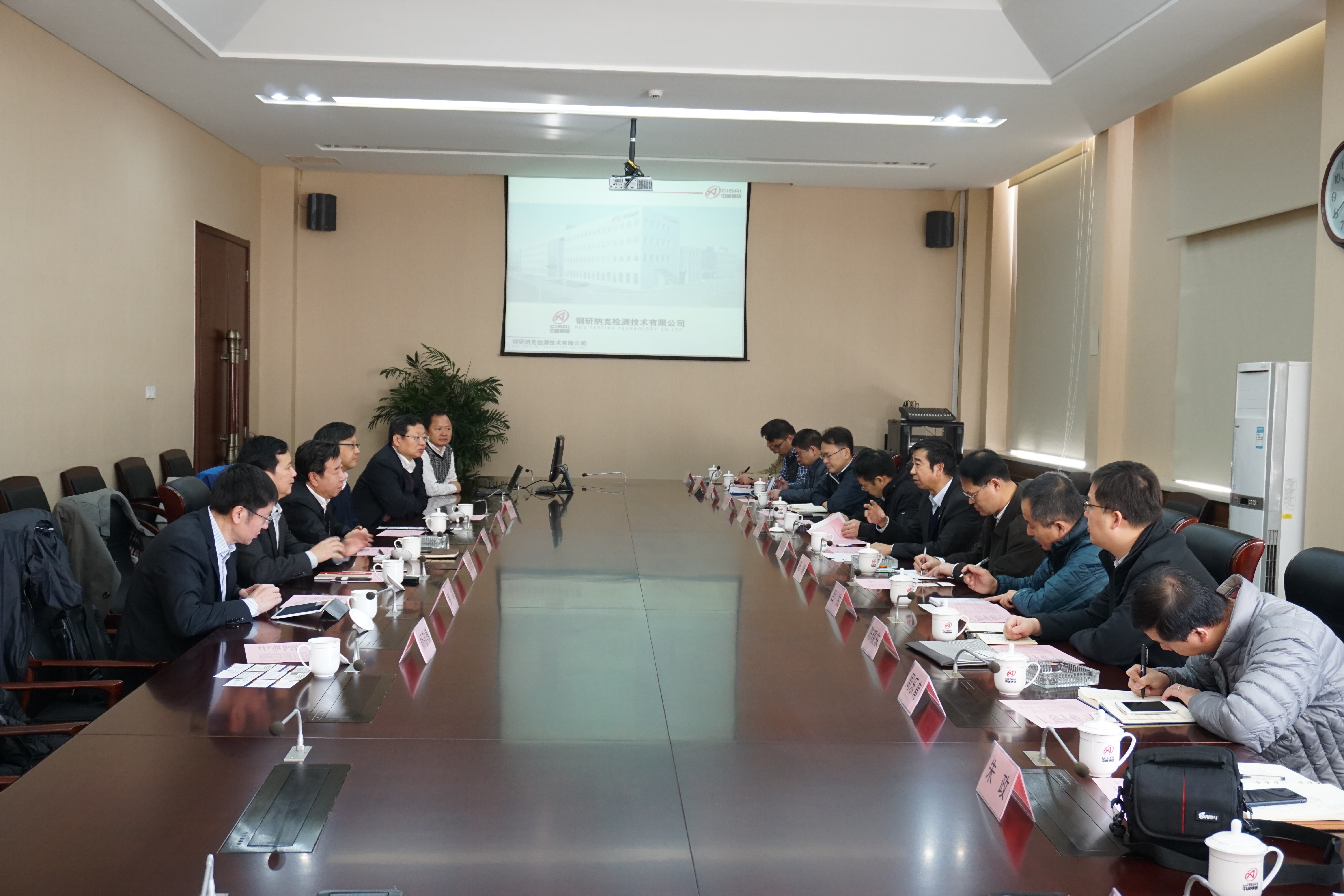 中國鋼研集團(tuán)科技部杜挽生主任、鋼研納克檢測公司賈云??偨?jīng)理、鮑磊黨委書記,機(jī)械總院行業(yè)發(fā)展部劉中星副部長、機(jī)械總院沈鑄所唐驥副所長、機(jī)械總院北自所孟祥宇副所長、機(jī)械總院中機(jī)生產(chǎn)力中心肖承翔副主任、機(jī)械總院中汽認(rèn)證中心陳曉東主任助理及相關(guān)人員參加了本次對接交流。