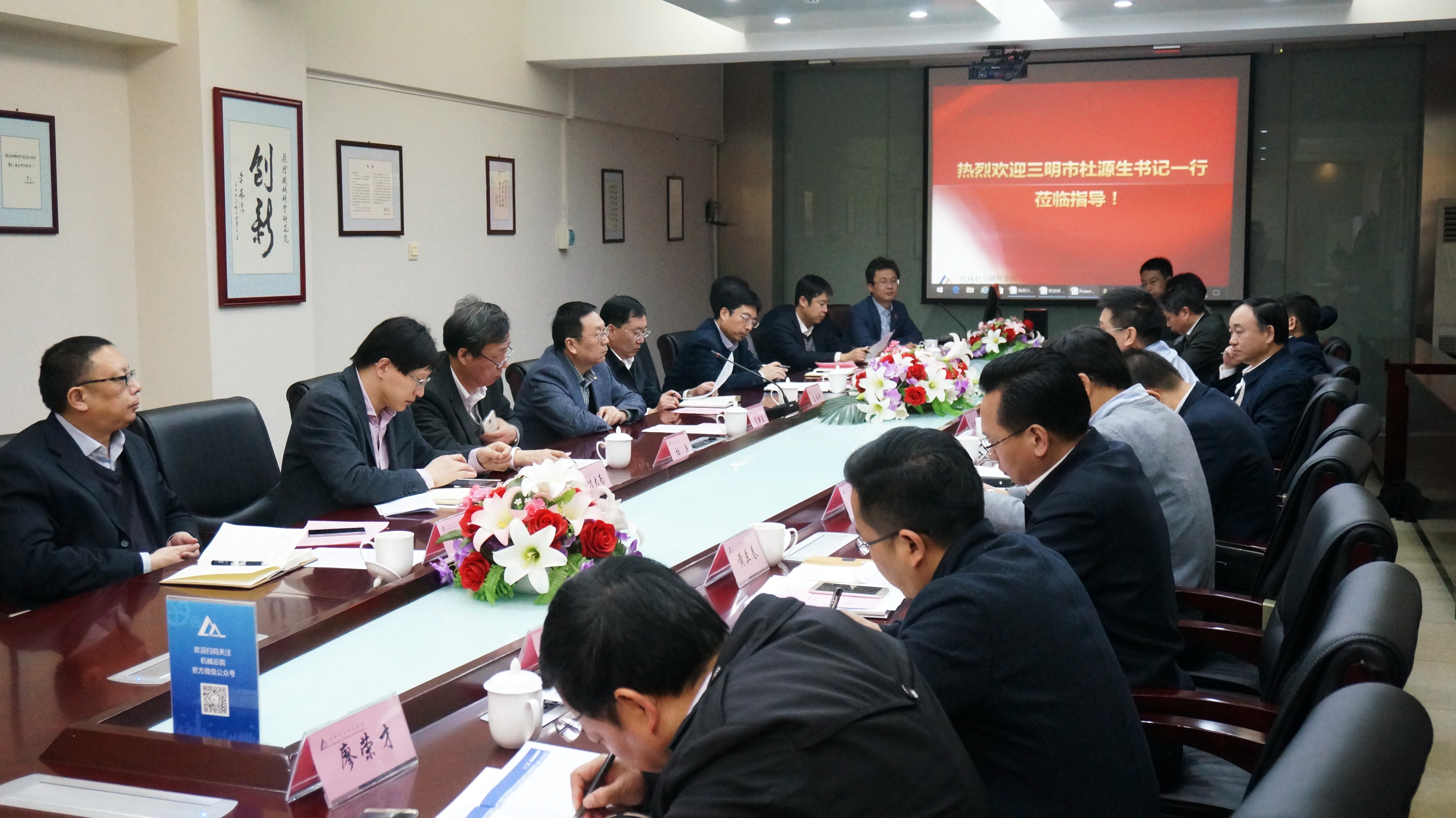 12月15日上午,福建省三明市委書記杜源生、副市長程鵬鷹一行14人到訪機械總院,機械總院副院長王西峰、原院長李新亞熱情接待了來訪客人并進行了座談交流。三明市委副秘書長溫欣傳、市經信委主任王立文、市國資委主任吳擢祥、中共沙縣縣委書記楊興忠、中共將樂縣委書記劉潤宇等領導參加座談。