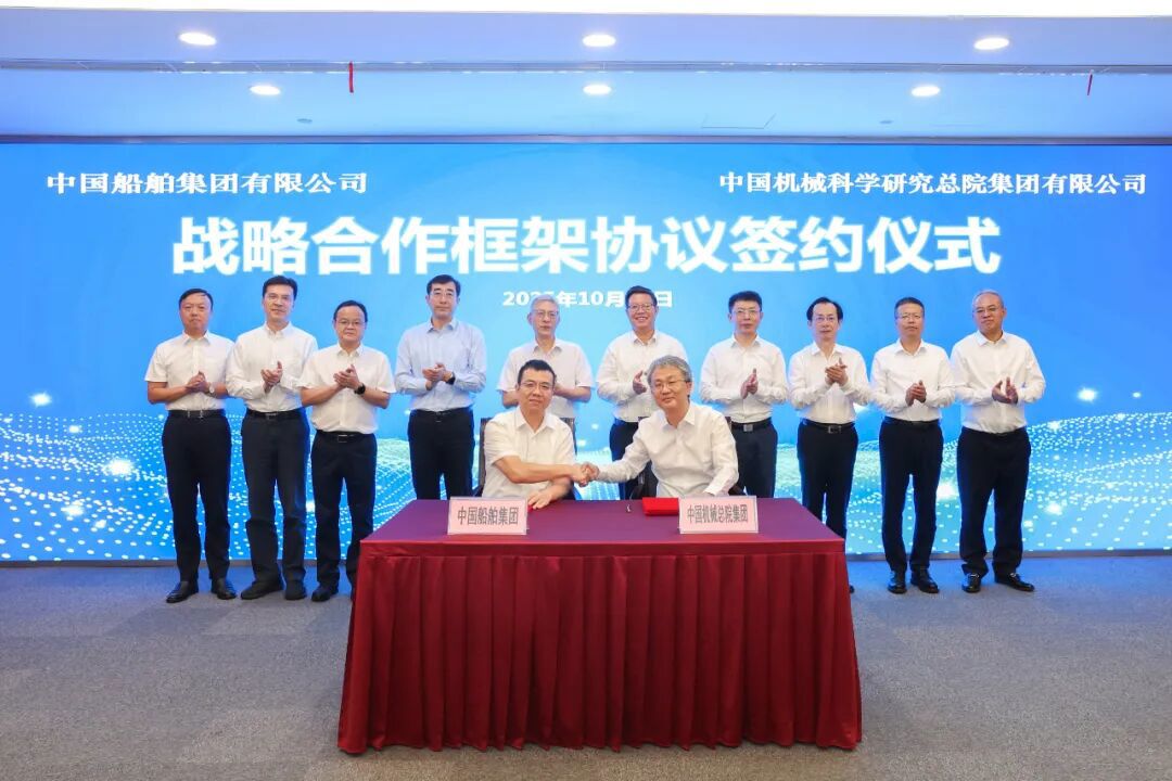 10月17日,中國機(jī)械總院與中船集團(tuán)在上海簽署戰(zhàn)略合作協(xié)議。集團(tuán)黨委書記、董事長王德成,中船集團(tuán)黨組書記、董事長徐鵬共同見證簽約,集團(tuán)副總經(jīng)理姜超、中船集團(tuán)副總經(jīng)理彭原璞代表雙方簽署協(xié)議。